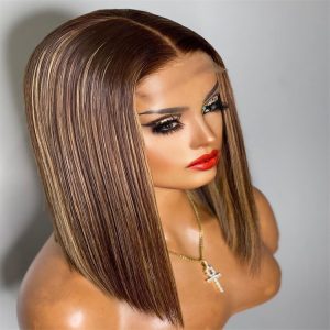 Brazilian Virgin Cuticle Aligned Hair 13*4 Lace Front Wig Highlight Red Brown Bob Full Lace Wigs 150 Density